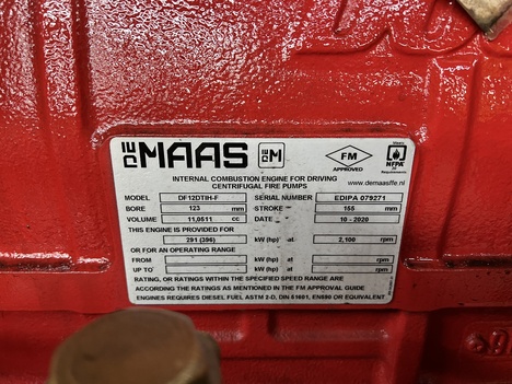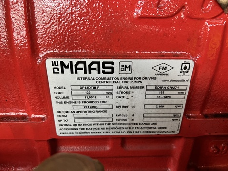 (NEW) 2020 Doosan DE MAAS DF12DTIH-F Diesel Engine For Sale, Fire Pump Engine, Internal Combustion Engine For Driving Centrifugal Fire Pumps, 396HP @ 2100RPM, FM Approved, Meets NFPA 20 Requirements, 11L Displacement, Bore 123 mm, Stroke 155 mm, 6 Cylinders, Turbocharged, Serial# EDIPA079271, Stock #7608 OVER 500 ENGINES IN STOCK! READY TO SHIP! WATCH TEST RUN VIDEO ON CA TRUCKS WEBSITE! Engine is Test Run & Inspected Internally. Warranty! Many Engines in Stock! Call CA Truck Parts for more information (305)688-1101