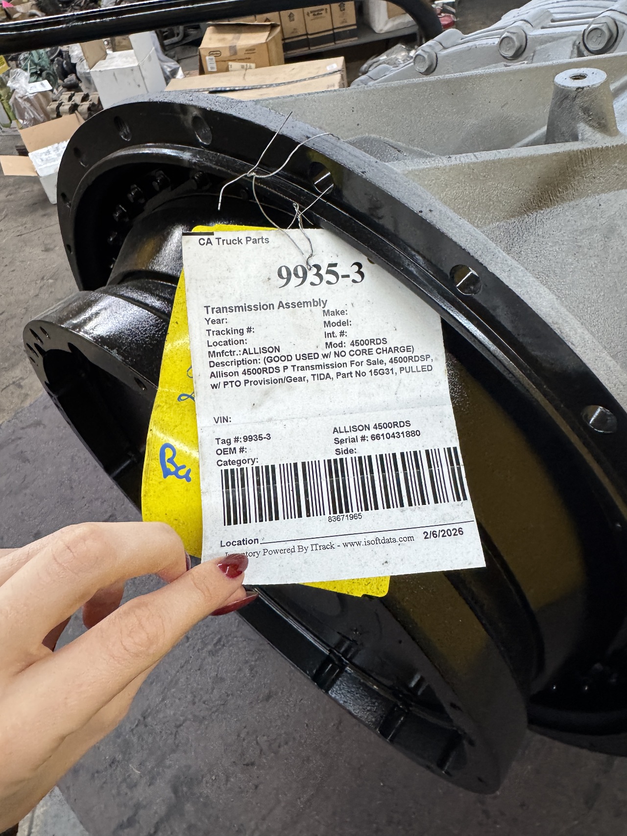(GOOD USED w/ NO CORE CHARGE) Allison 4500RDS P Transmission For Sale w/ Cooler, 4500RDSP, w/ PTO Provision/Gear, TIDA, Part No 15G31, Casting # 29544592, Pulled off 2016 MACK LEU613 w/ Mack MP7 Engine, Serial # 6610431880, Stock # 9935-3 | Tested & Inspected! Component Number Description RSN NO REAR SUPPORT BRKT. 01-833 MAIN HOUSING GROUP/HD 02-629 W/O FILL TUBE, DIPSTICK, 05-601 MAIN SHAFT MODULE (WR) 08-793 1760 HALF ROUND YOKE, W/DUST SHIELD 10-610 FRT SUPT & OIL PUMP (PTO) 14-1005 P1 PLANETARY MODULE 15-512 P2 PLANETARY MODULE (WR) 16-1848 HD, 4" SUMP, PLUS 4, W/OLS & FLI 20-741 HD-DR MT HI CAP CLR,8378 STRAIGHT ELB,4" 21-928 TC541 CONVERTER GROUP 24-897 HD - CUML/QSX VOLVO MD11/13 MACKMP 7/8 25-546 ROTATING CLUTCH GROUP (PTO) 34-545 CONVERTER HSG MOD (PTO) 39-853 HD, REAR COVER, WR, NOT TACHO, 1BOLT, O/ | Tested & Inspected! Transmission is Tested & Inspected! Warranty! Many Engines in Stock! Call CA Truck Parts for more information (305)688-1101